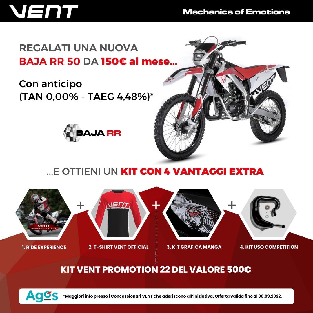 “Acquista subito la tua VENT 50 e usufruisci della nuova campagna promozionale VENT per ricevere il KIT PROMOTION 22 dal valore di 500€”: questo il contenuto della nuova promozione attivata da VENT con durata fino al prossimo 30 settembre.
