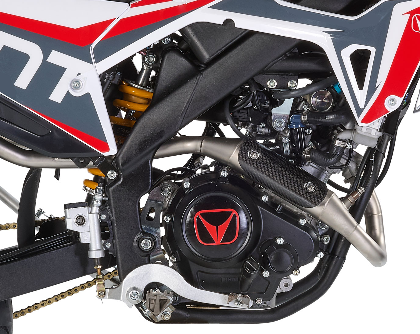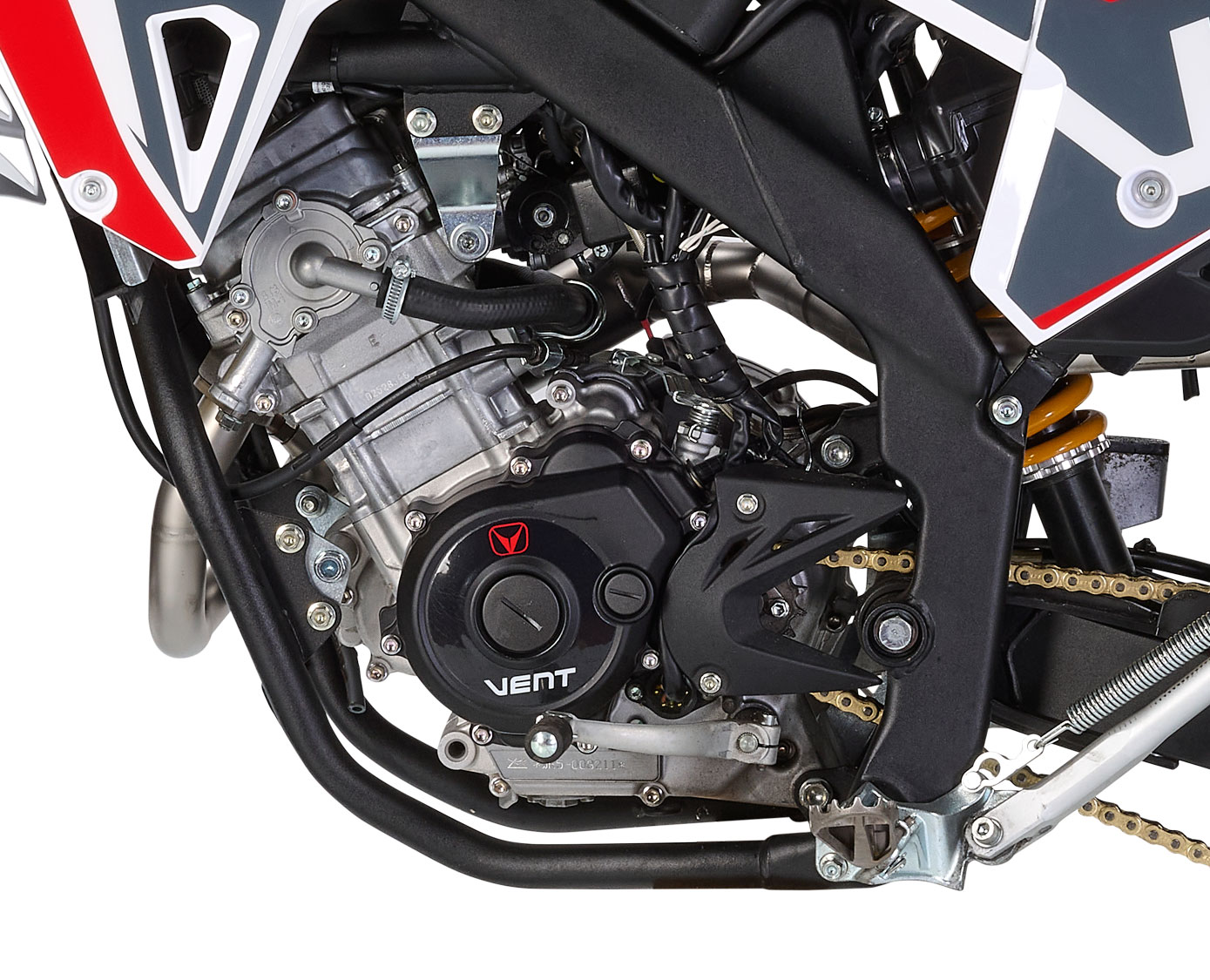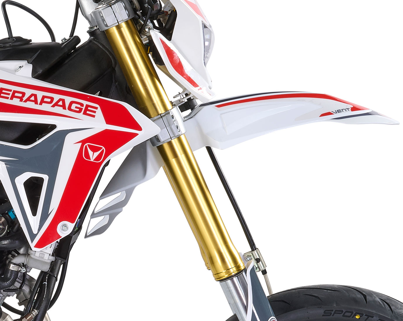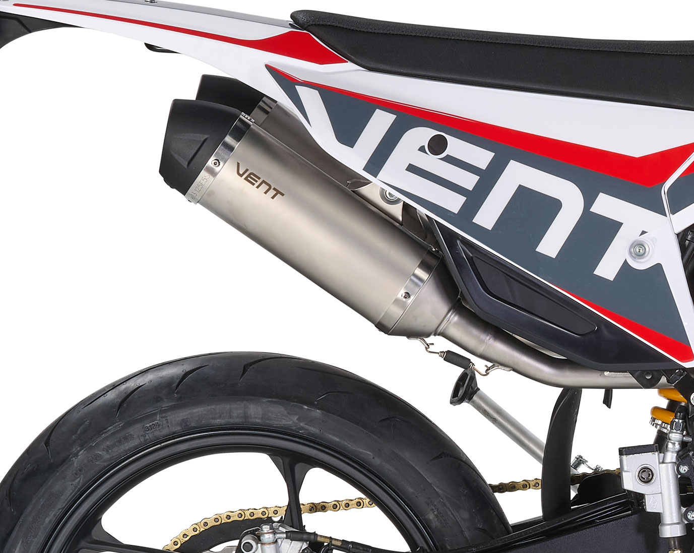 La nuova motard DERAPAGE 125 4T firmata VENT è espressione di modernità, affidabilità e prestazioni. La versione 2022, omologata Euro5, si arricchisce del nuovissimo motore Minarelli Euro 5 a fasatura variabile, caratterizzato da bassi consumi ed emissioni, ma anche da ottime prestazioni e dalla frizione antisaltellamento che garantisce staccate sempre precise, evitando il bloccaggio della ruota posteriore. Rinnovato anche l’impianto frenante, con all’anteriore un disco Wave da 290 mm e pinza flottante a due pistoncini e al posteriore con disco Wave da 220 mm, che uniti al nuovo sistema CBS di frenata ad azione combinata rendono DERAPAGE 125 un mezzo estremamente sicuro. Completano la dotazione di serie il grintoso doppio silenziatore Black Finish e le grafiche dedicate, chiaro richiamo ai colori istituzionali di VENT. DERAPAGE 125 4T è un motard capace di far divertire in ogni condizione di utilizzo: dal tragitto casa-scuola o lavoro, oppure per il semplice tempo libero. Proverete emozioni uniche!